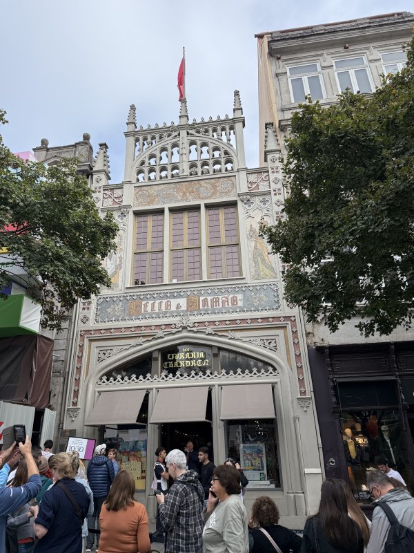 Niedaleko dworca Sao Bento znajduje się wieża i kościół kleryków. Na wieżę nie wchodzimy, choć słynie z świetnego widoku, ale oglądamy wnętrze. Na początek tłumaczymy obsłudze, że chcemy obejrzeć tylko kościół, a nie wieżę i muzeum. Wpuścili za darmo. Piękne wnętrze. Jeszcze jeden niewielki spacerek i jesteśmy przy księgarni Lello. Księgarnia zawdzięcza swoją sławę rzekomemu związkowi z Harym Poterem. Jej wnętrze miało zainspirować panią Rowling do opisania wnętrz Hargwardu. Autorka stwierdziła kiedyś, że w ogóle nigdy nie była w tej księgarni, ale to nie przeszkadza, żeby stała się miejscem, gdzie każdy chce być. My akurat nie chcieliśmy, a to głównie z tego powodu, że wejście do księgarni jest płatne, a mało tego, trzebabyło sie zapisać na konkretną godzinę. Obejrzeliśmy tylko fasadę i tłumek czekający na wejście.