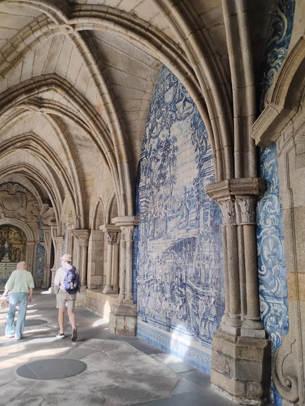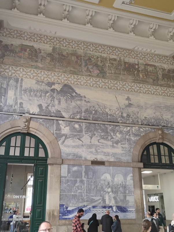 Dzień zaczął się od pysznej jajecznicy. Darek podjął się dzieła zrobienia jajecznicy z 20 jajek. Pycha. Niby grupa obcych ludzi, a już stajemy się zespołem. A zaczęło się od jajecznicy. W domu przygotowałem plan miejsc, które warto zobaczyć w Porto. Wychodzimy rankiem. Pierwsze ciekawe miejsce to Kaplica Dusz. Cała pokryta kafelkami zwanymi azulejos. Oglądamy elewację, wchodzimy do środka. Wnętrze również bogato zdobione. Niedaleko znajduje się Cafe Majestic. Nie wchodzimy do środka, ale zaliczamy sobie, że byliśmy przed kawiarnią, gdzie pani Rowling pisała przy kawie pierwszą część opowieści o Harym Poterze. Zdaje się, że wśród nas nie ma entuzjastów tej literatury, więc idziemy dalej. Teraz dworzec kolejowy Sao Bento. Niezwykły, bo to największy w Porto obiekt pokryty słynnymi azulejos. Ten obiekt robi wrażenie na wszystkich. Rozglądamy się we wszystkie strony, zadzieramy głowy w górę. Trochę przeszkadza tłum gapiów, który jak my przyszedł oglądać i fotografować.