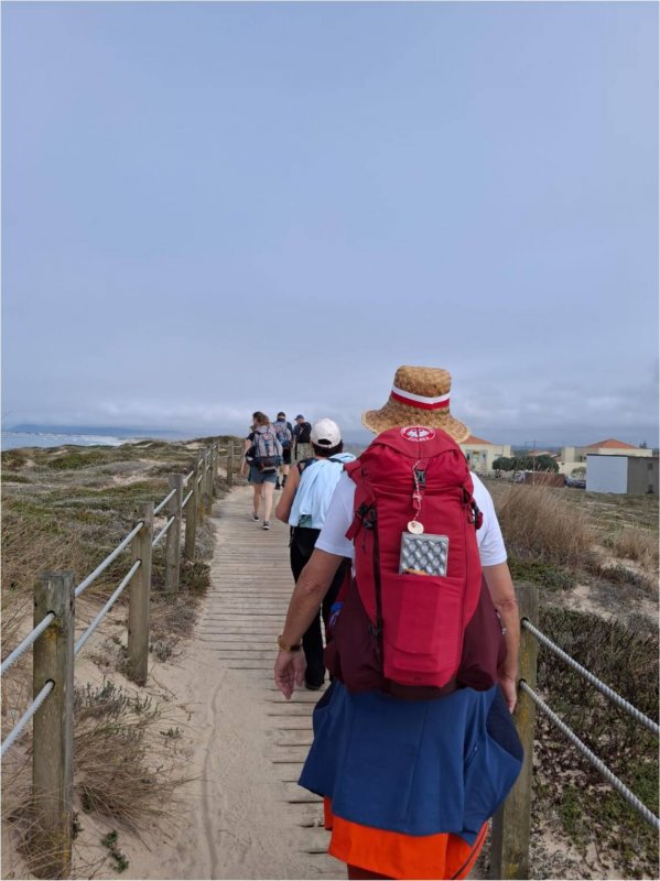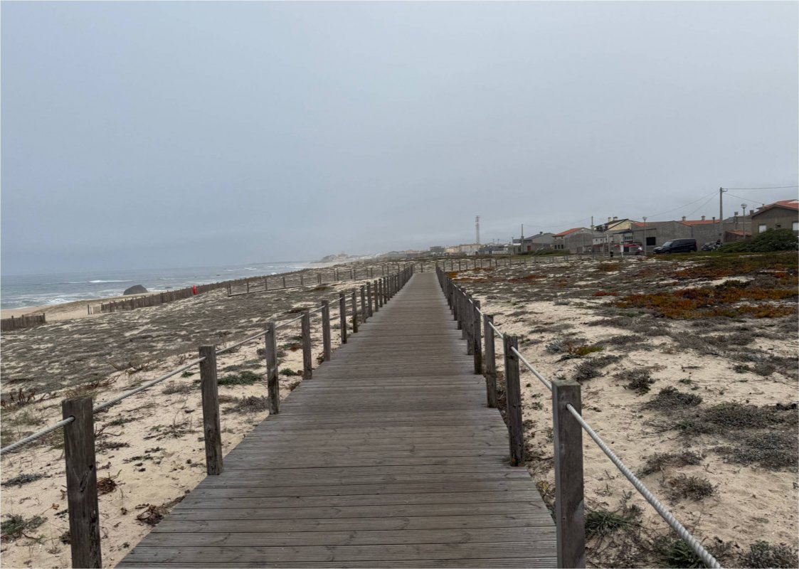 4 października. Pierwszy dzień wędrówki. W zasadzie przypominanie sobie tej trasy, która przeszedłem wiosna ubiegłego roku. Jest nas osiem osób, żeby się trzymać razem, a każdy ma swoje tempo chodzenia, wymyśliliśmy kolejność, w jakiej pójdziemy. Nie do końca się ta metodą sprawdziła, ale generalnie już wiemy, kto chodzi szybciej, kto wolniej, a kto lubi nieco własnymi ścieżkami. Start mamy w Povoa de Varzim, 30 km na północ od Porto, dokąd dojeżdżamy metrem. Idziemy pełni radości. Wzdłuż wybrzeża Atlantyku p o drewnianych chodniczkach. Bliżej i dalej od oceanu.
